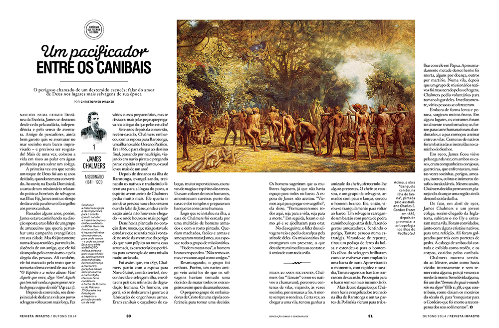 Outros destaques da edição são a estreia da série “Histórias que fizeram história” (nesta edição, sobre o chamado do missionário James Chalmers, que dedicou sua vida a evangelizar tribos canibais no final do século 19) e a nova seção “Impacto recomenda”, com dicas de livros e discos selecionados pela equipe da revista.